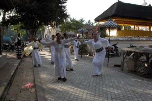 Those in white are considered the “chosen” in a community. Here women fall into trance around the Dalem Ped temple. (Photo by Maria Bakkalapulo)
