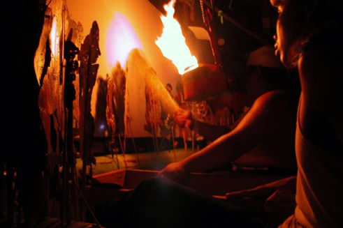Dalang Made, or puppeteer, performs a traditional wayang kulit shadow puppet theater at Dalem Ped. He has been dedicating himself here for the last 30 years to serve Ratu Gede Macaling through his shadow puppet theater. (Photo by Maria Bakkalapulo)