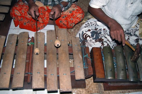 The saron uses both bamboo and metal keys to create it’s unique interlocking rhythm. (Photo by Maria Bakkalapulo)